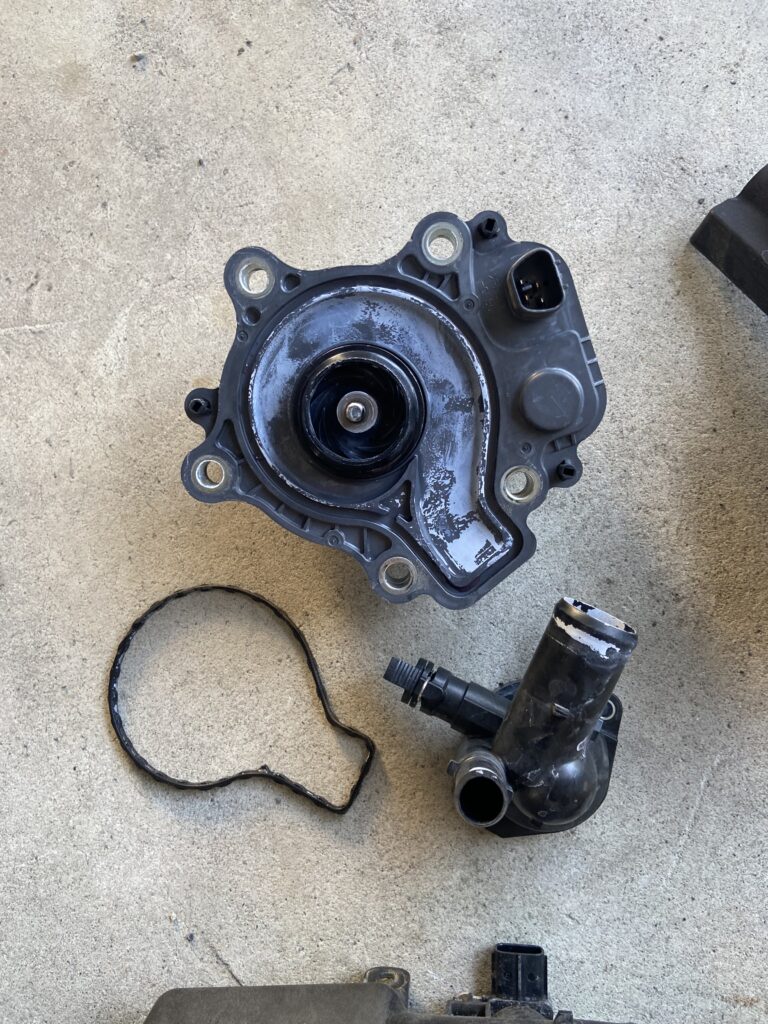 ウォーターポンプ・モーターとサーモスタットユニットも一緒に交換します。